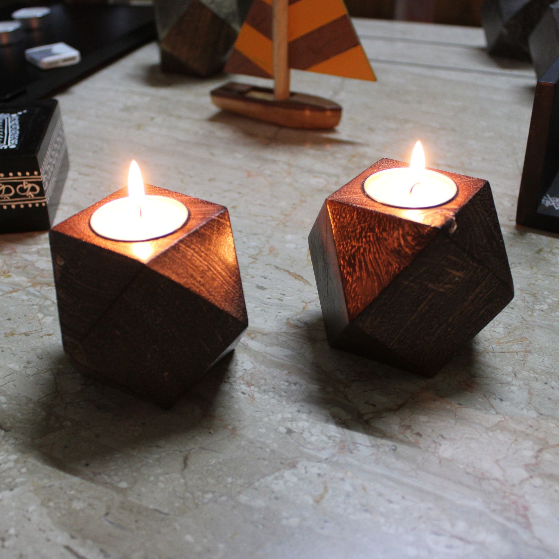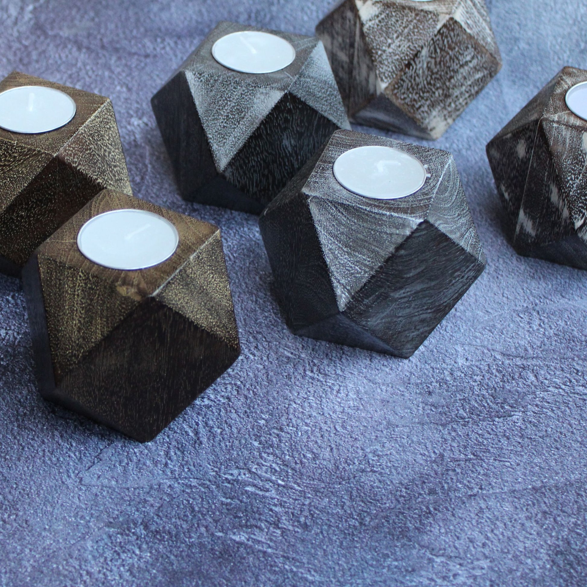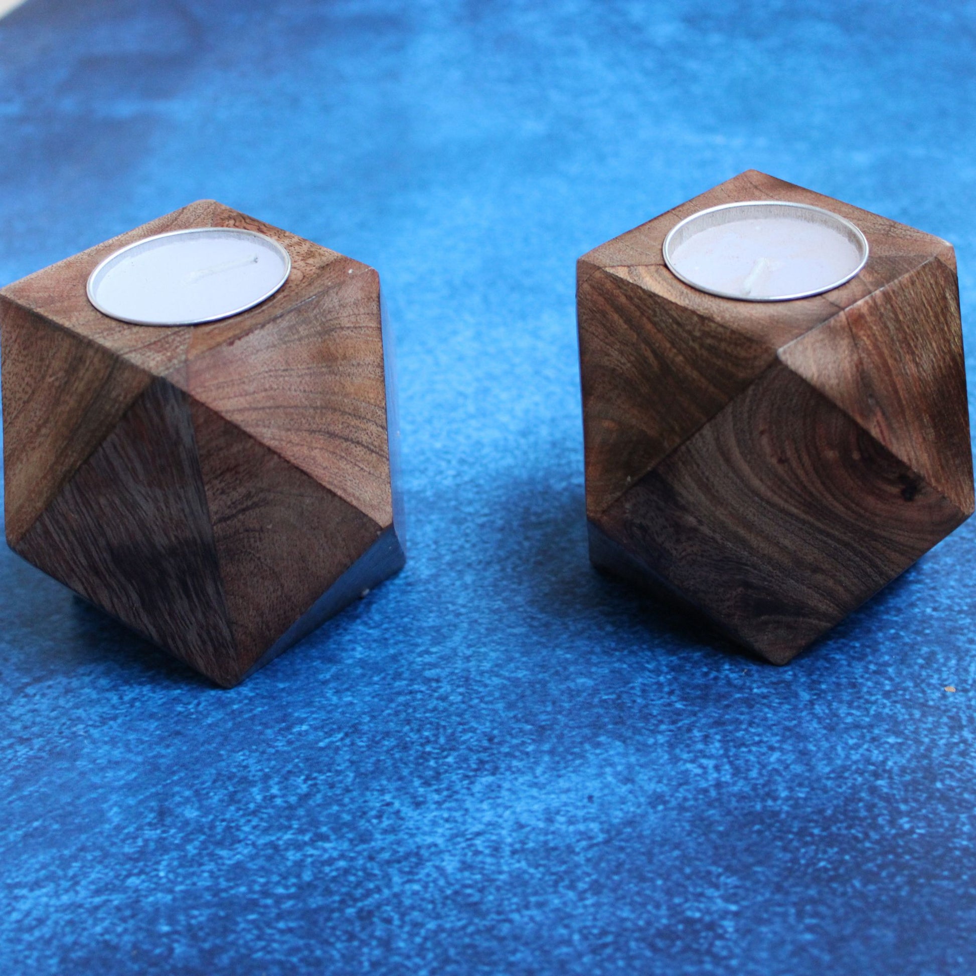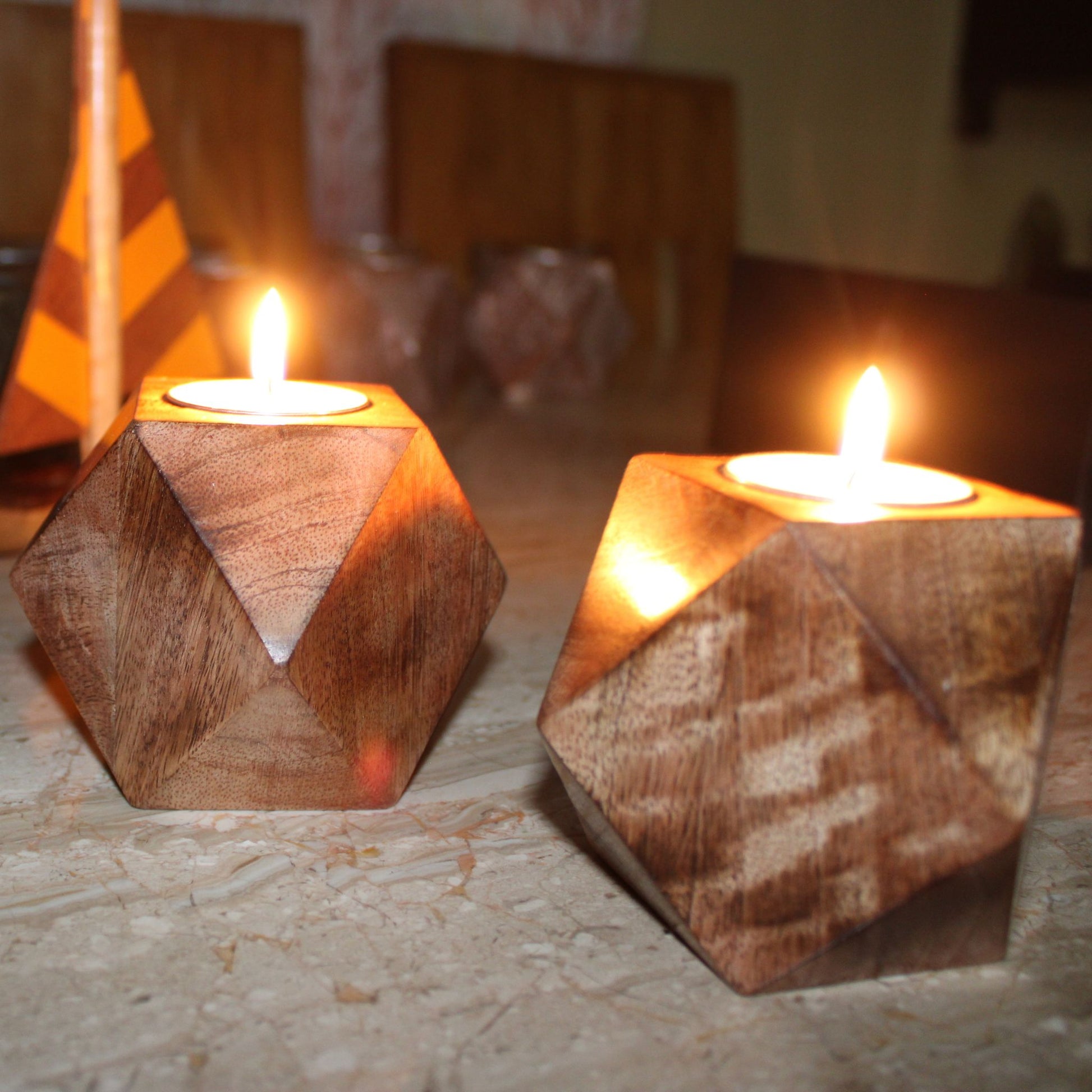 Handcrafted Diamond Shaped Antique Look Wooden Tea Lights Holder