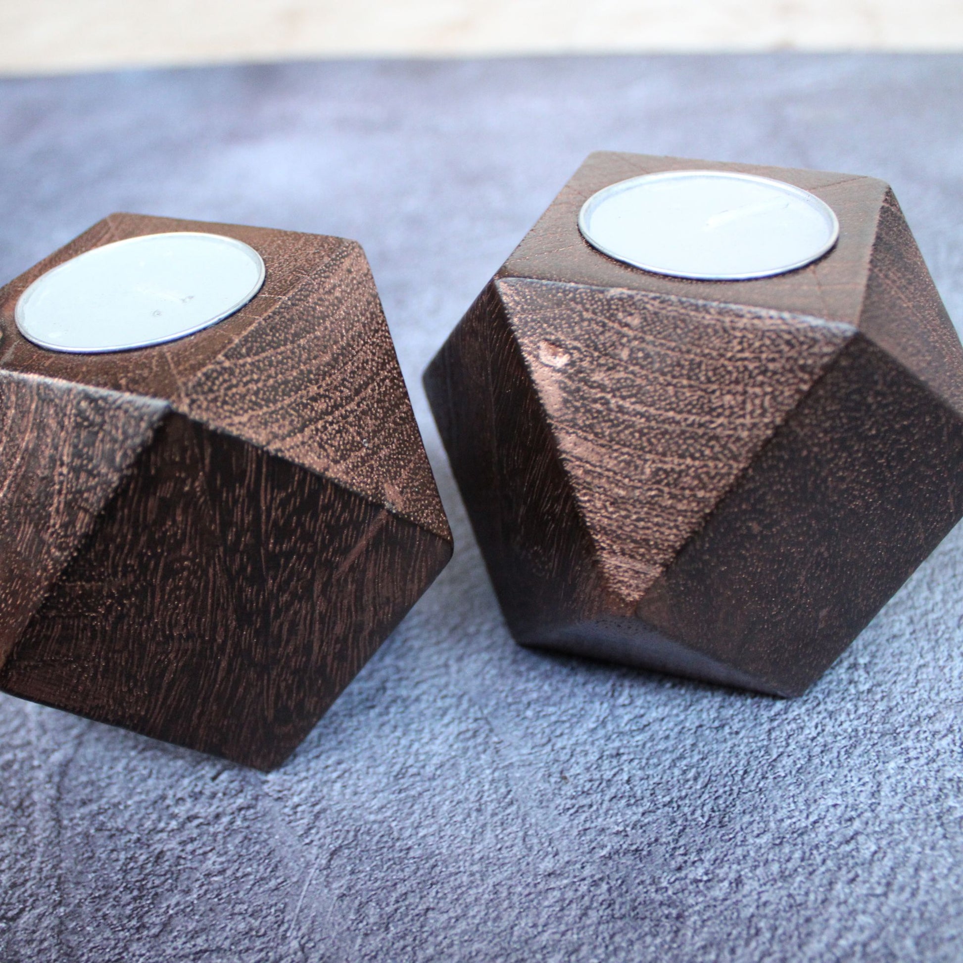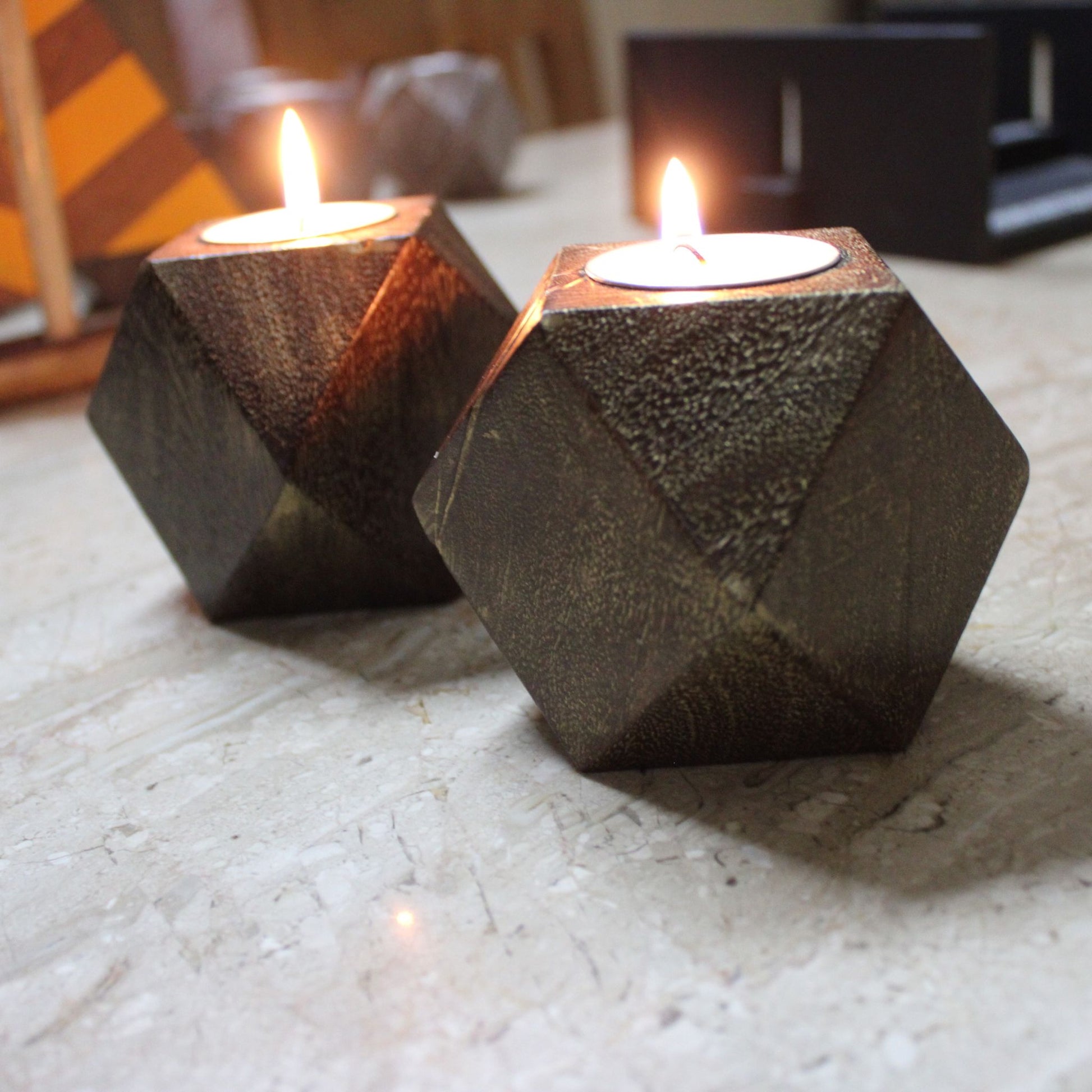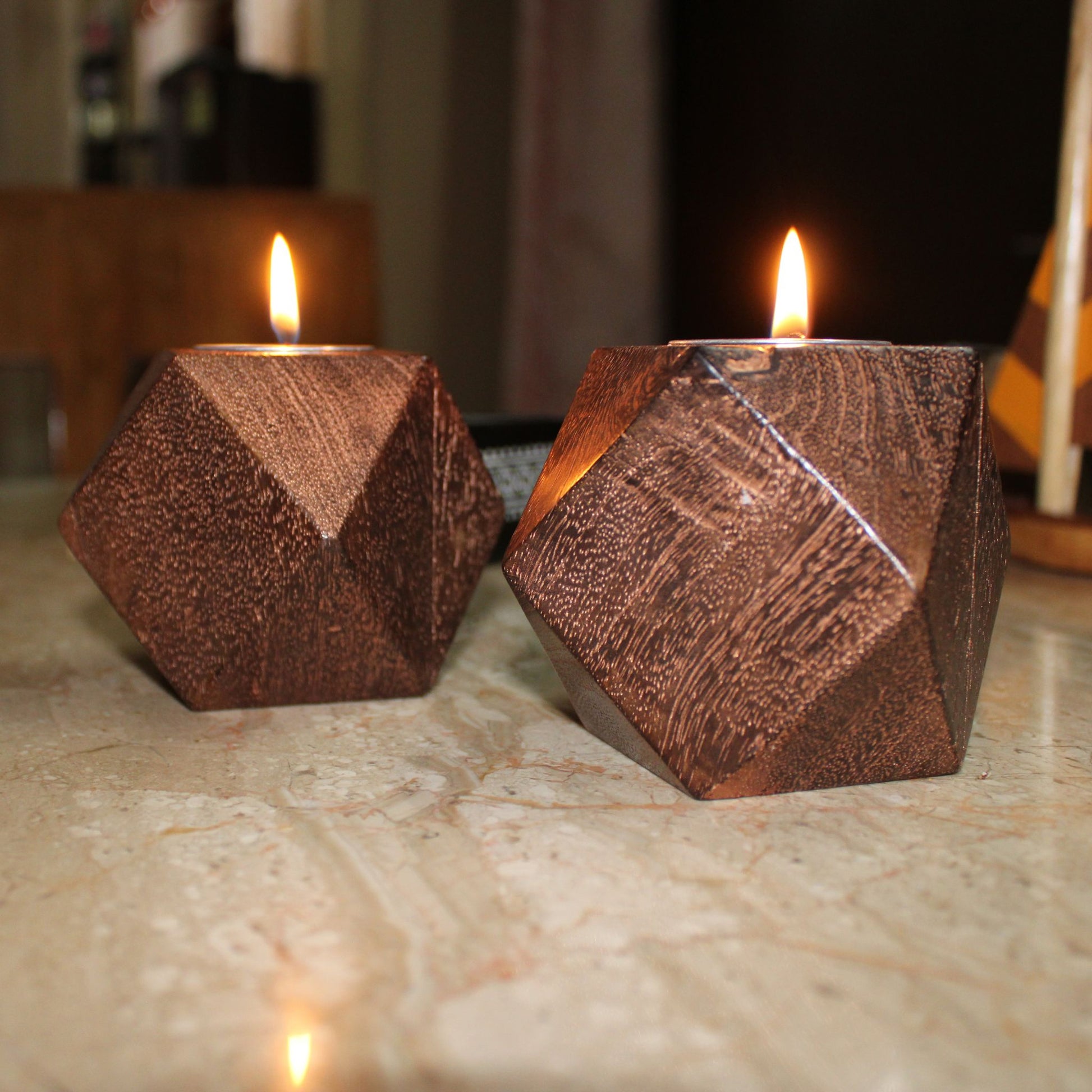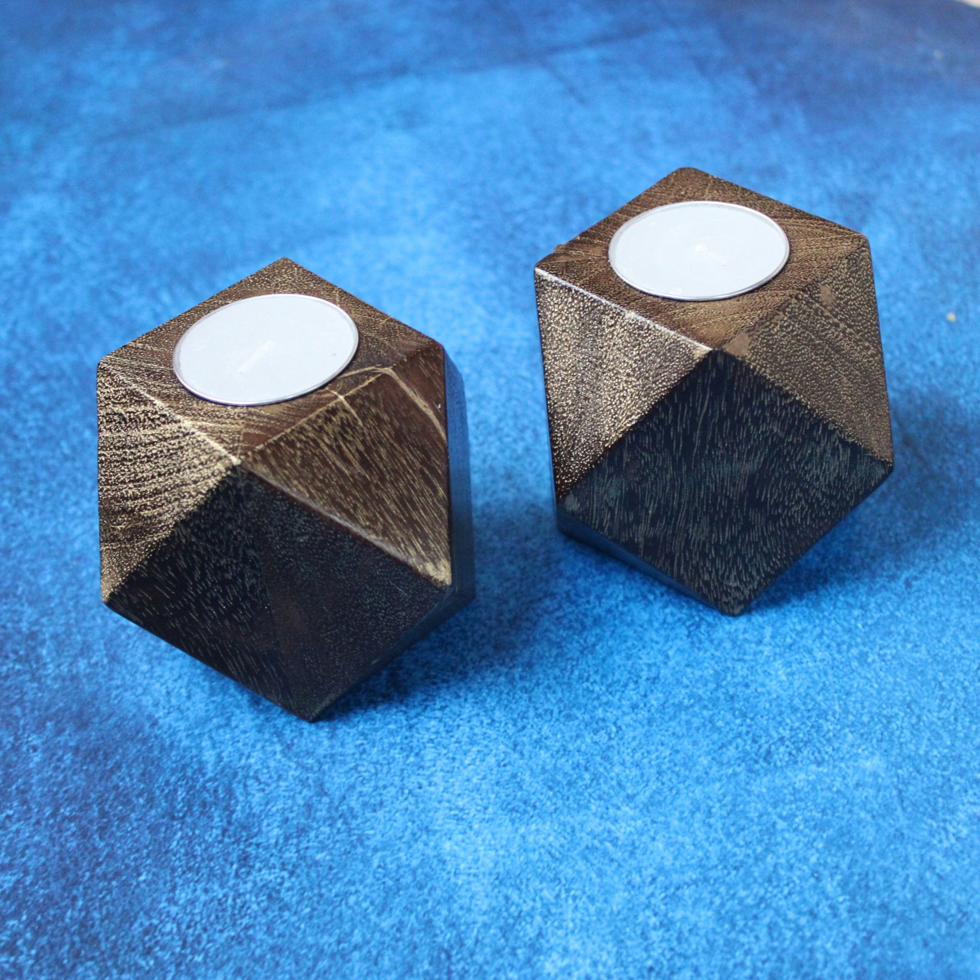 Handcrafted Diamond Shaped Antique Look Wooden Tea Lights Holder