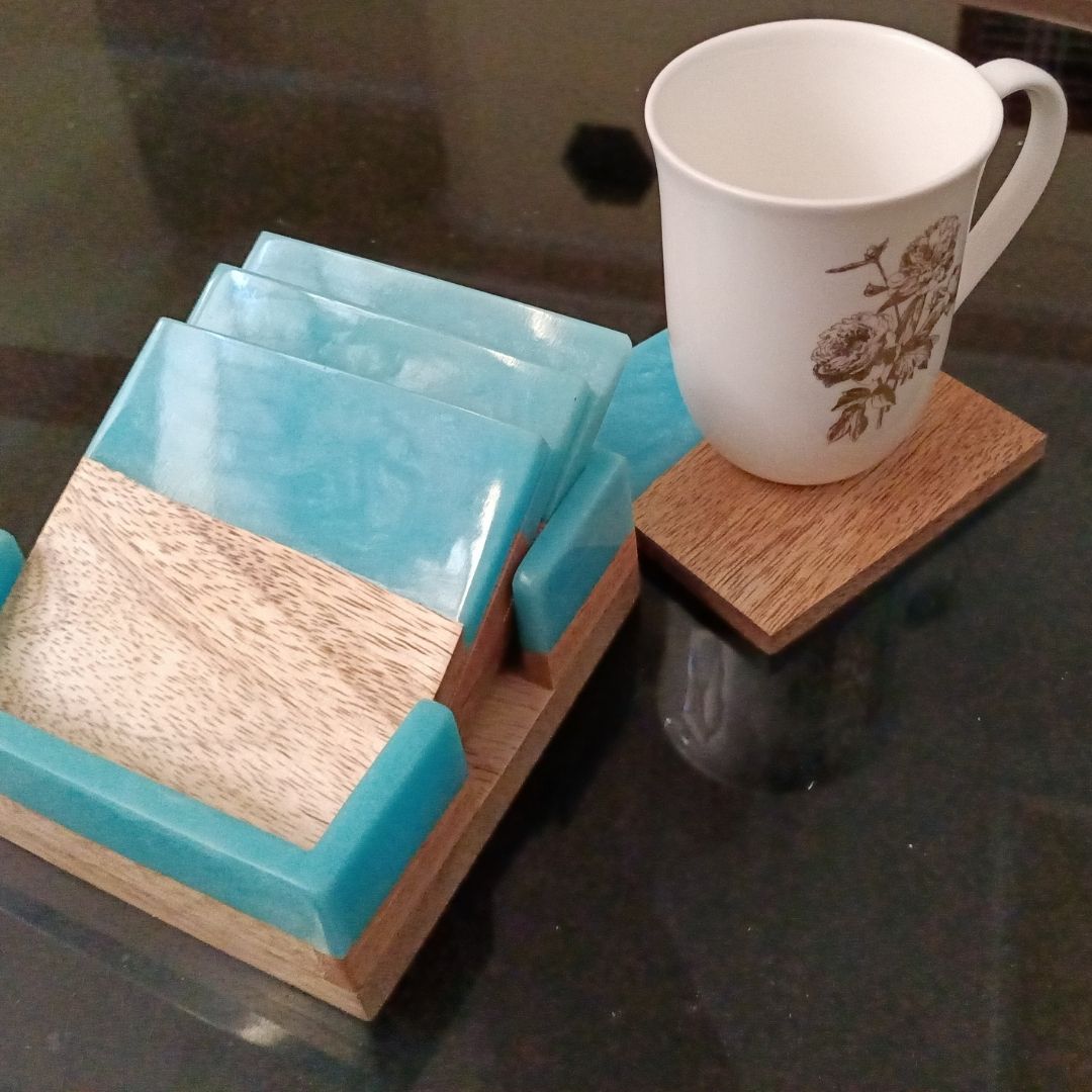 - Beautiful Wooden Handmade Wooden and Resin Mixed Coasters with Box Holder